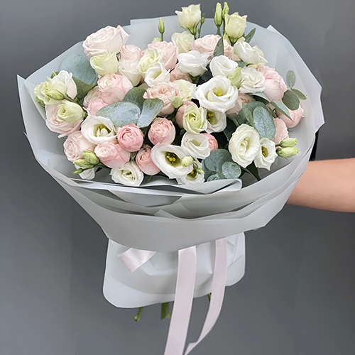 Букет "Выше облаков" из эустом и кустовых пионовидных роз