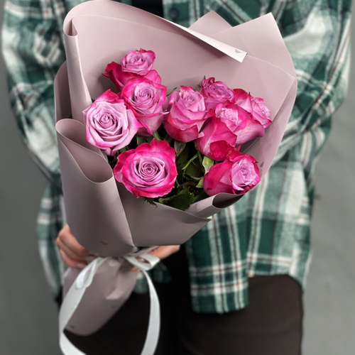 Букет "Сесилия" из 9 фиолетовых роз кения (40 см)